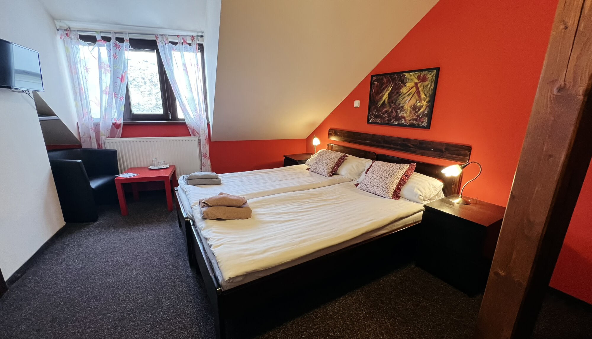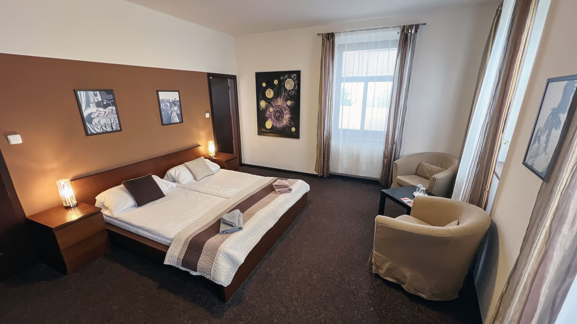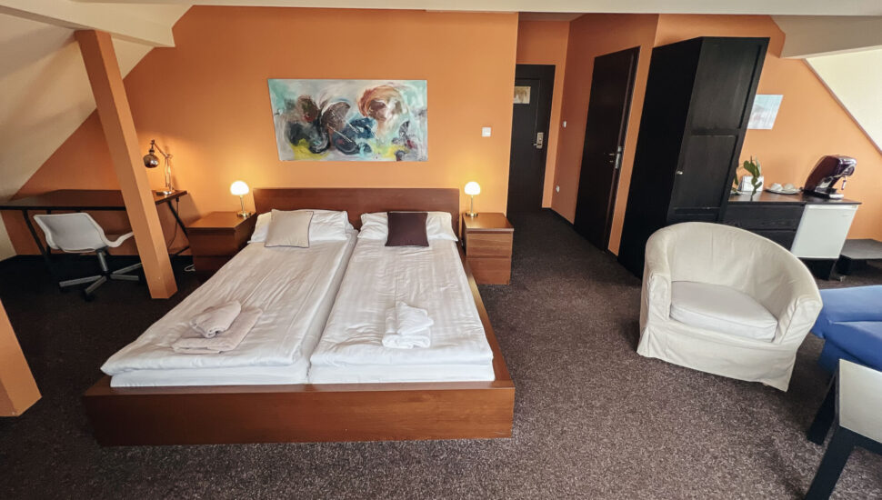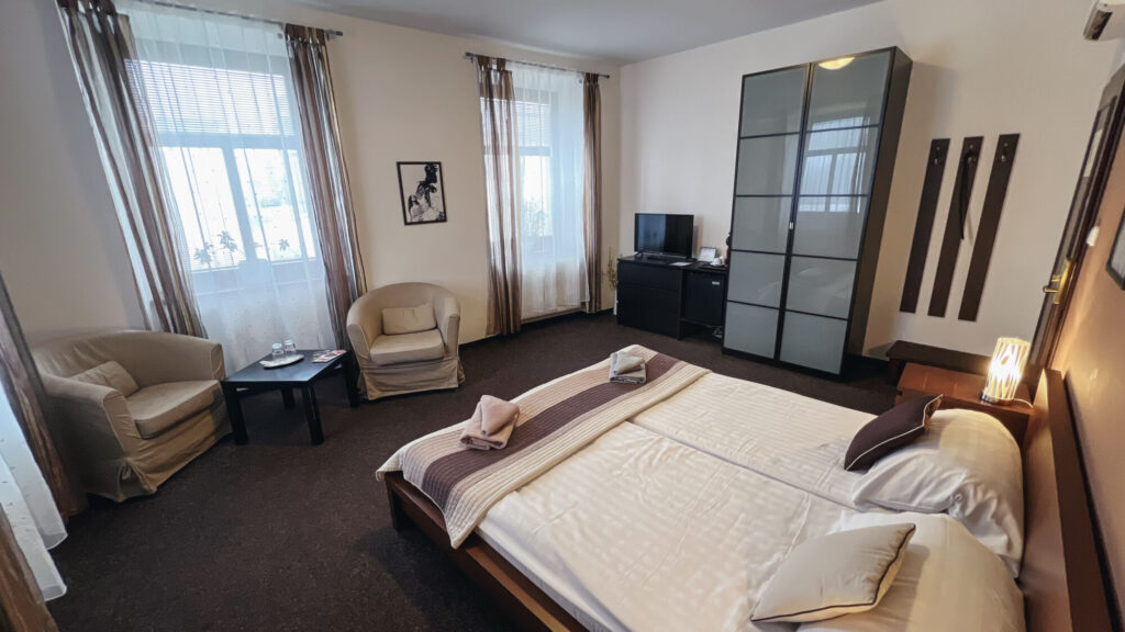 Modernly furnished double rooms with air conditioning and a private bathroom. To choose is from seven double rooms and of one room type Apartmá.