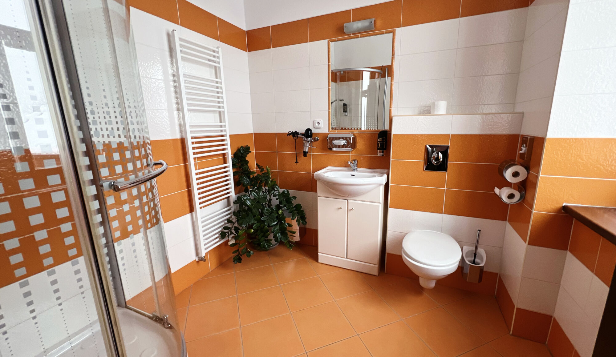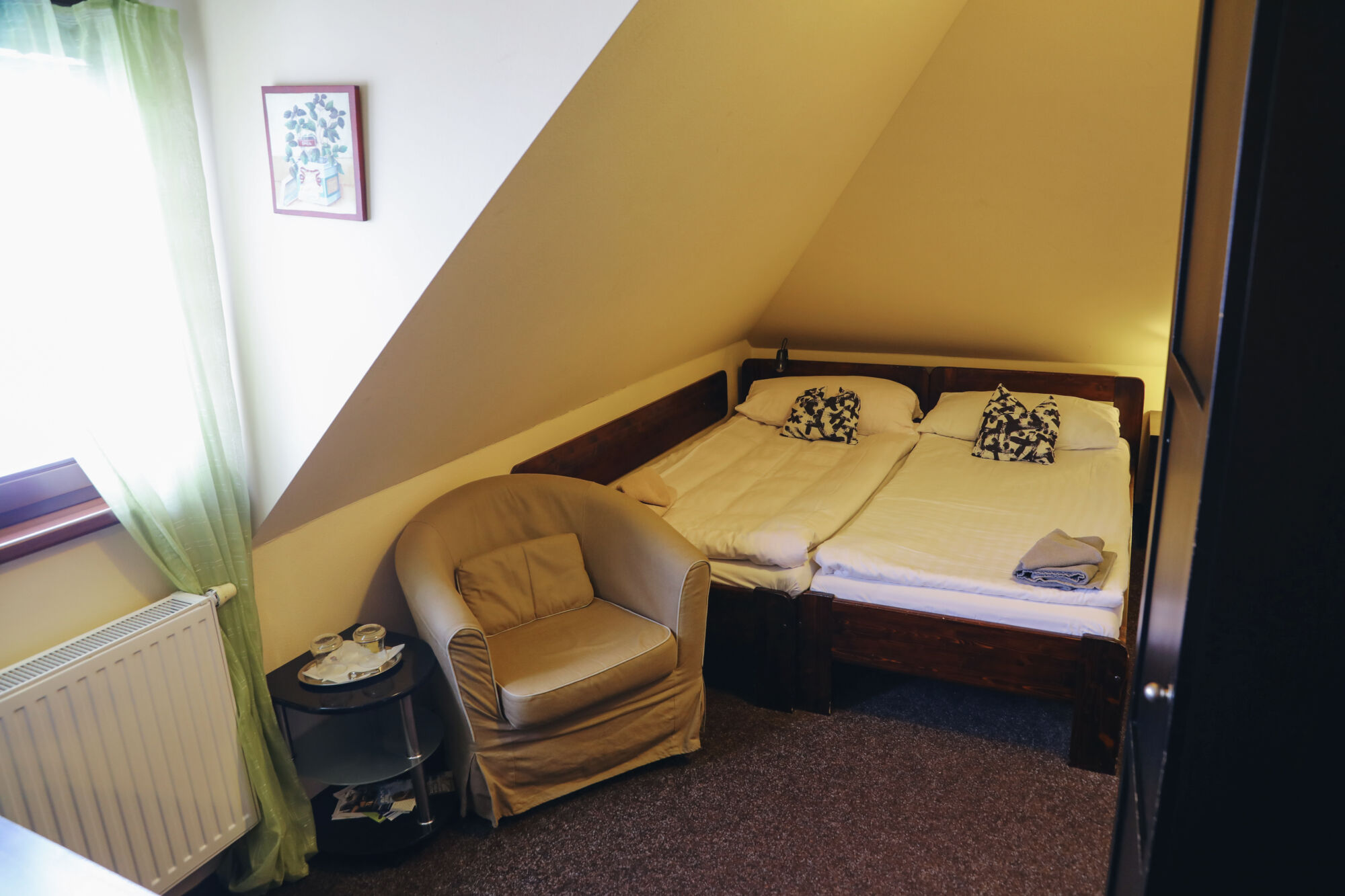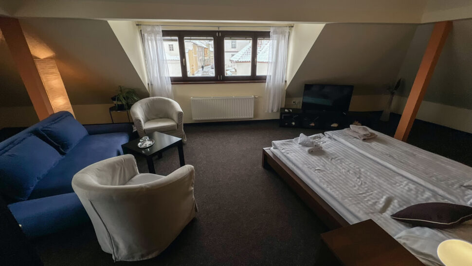 Modernly furnished double rooms with air conditioning and a private bathroom. To choose is from seven double rooms and of one room type Apartmá.